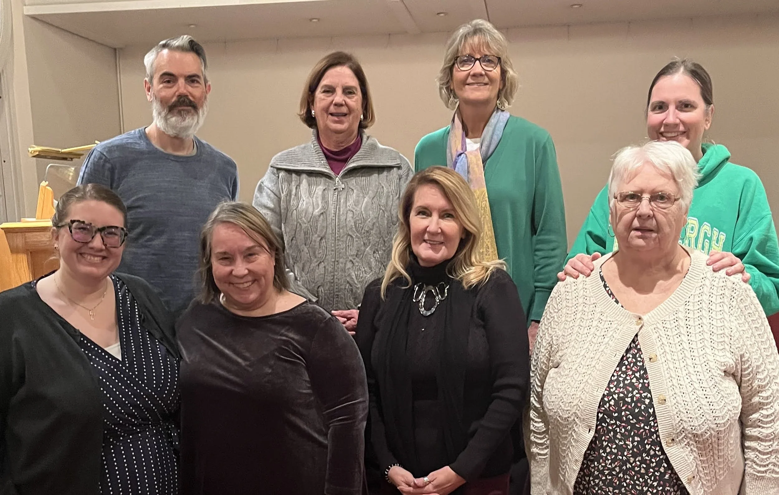 Pictured above: Pastor Kathleen Henrion and 2024 Session Members Matt Krob, Leslie McKinstray, Peggy Mayfield, Deb Rose, Leslen Sanders, Beth Ford, and Sonia Kesselring.