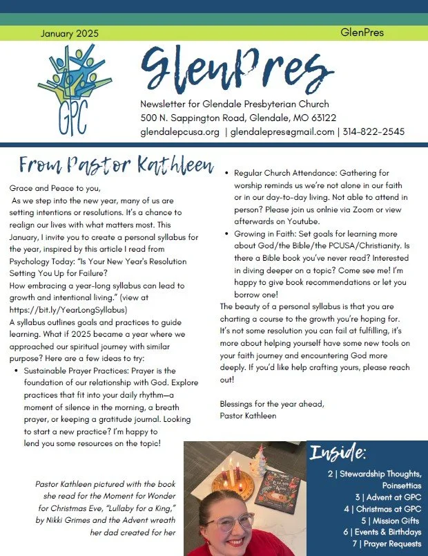 January 2025 Glen Pres Glendale PresbyterianJanuary 2, 2025Comment Facebook0 Twitter LinkedIn0 Reddit Tumblr 0 Likes